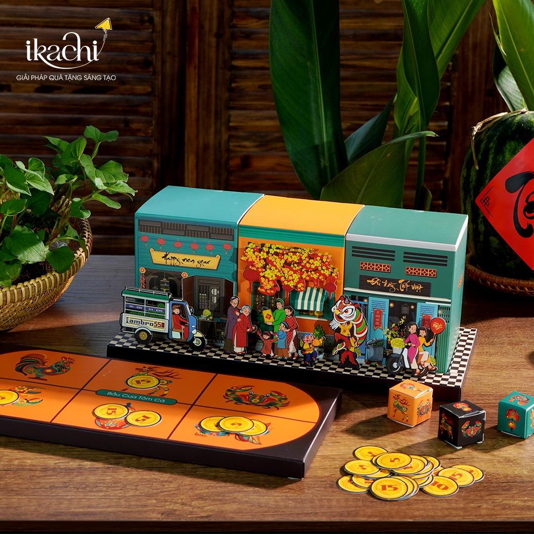 Significantly, Ikachi also brings the vibrant atmosphere of the traditional Tết right into your hands with the inclusion of the folk game Gourd – Crab – Shrimp – Fish, cleverly incorporated into the gift box. This game not only brings joy to the New Year but also symbolizes fortune and reunion. With every roll of the dice, each number and image is like a complete sowing of hope, conveying the aspiration for a prosperous, full, and happy New Year.