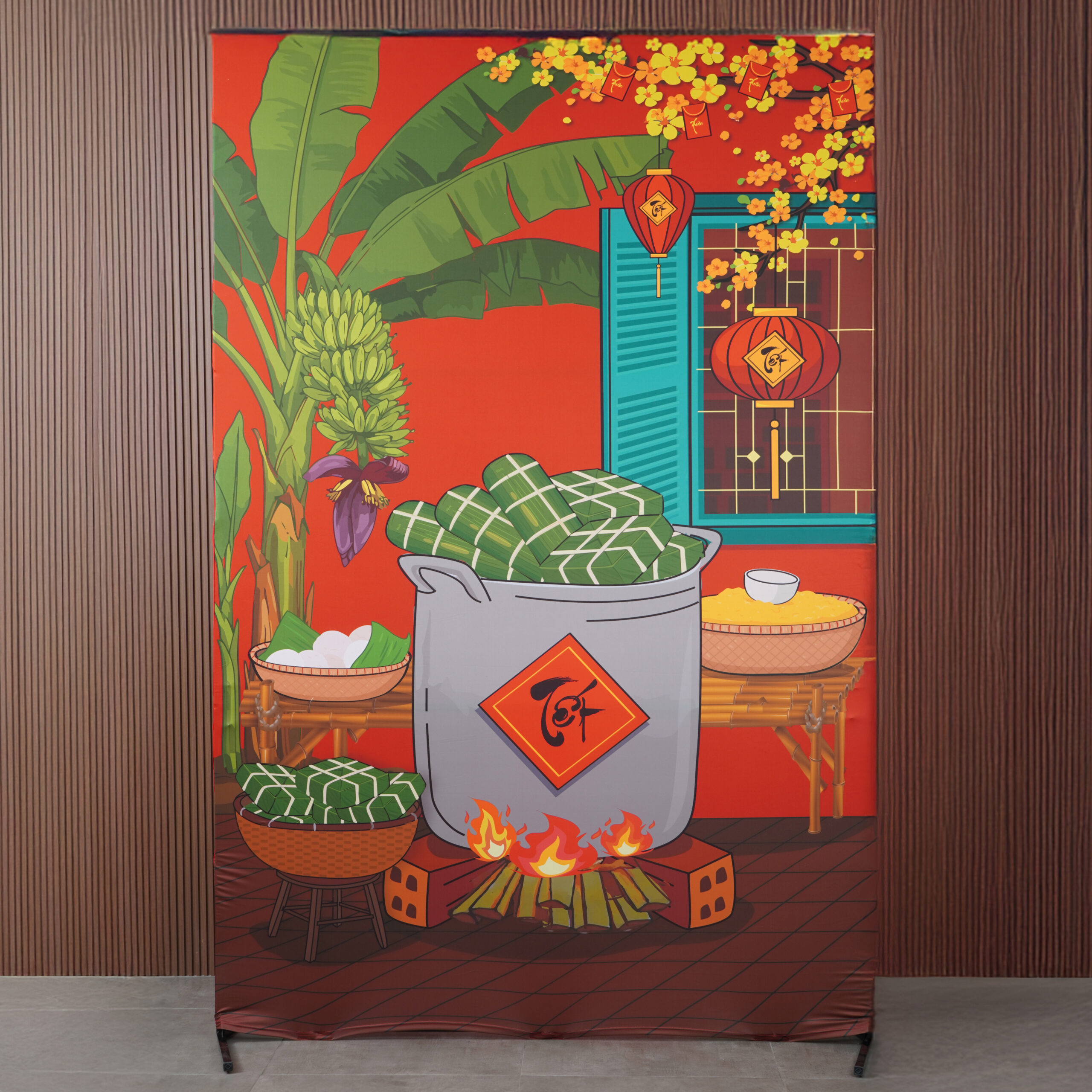 Phù hợp cho showroom, trung tâm thương mại, sự kiện Tết, không gian văn hóa – bộ backdrop vừa tạo điểm check-in ấn tượng, vừa là “phông nền ký ức” giúp người xem tìm lại Tết xưa giữa nhịp sống hiện đại.