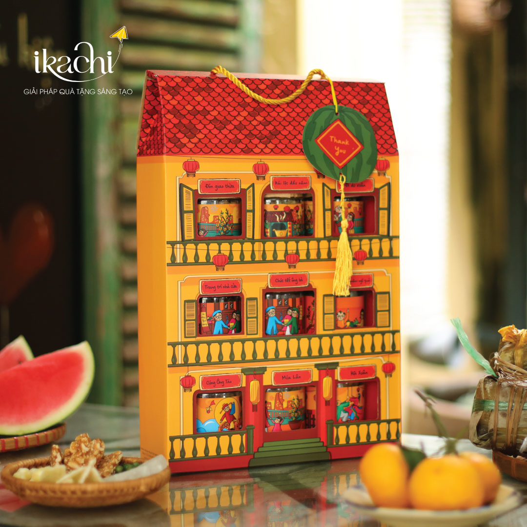 Lấy cảm hứng từ những ngôi nhà xưa mái ngói đỏ, ô cửa xanh rêu và bậc thềm gạch đã in dấu bao mùa nắng gió, Bộ Quà Tết Xanh Ikachi “Nhà Tết Cổ Truyền” được Ikachi tạo nên như một lát cắt ký ức, nơi Tết xưa vẫn còn nguyên vẹn trong từng chi tiết nhỏ. Mỗi khi Tết về, ngôi nhà ấy lại bừng sáng dưới sắc đỏ lồng đèn, tiếng cười trẻ nhỏ, mùi trầm hương phảng phất, tất cả hòa thành bản giao hưởng thân thuộc mà bất kỳ người Việt nào cũng từng nâng niu trong lòng.